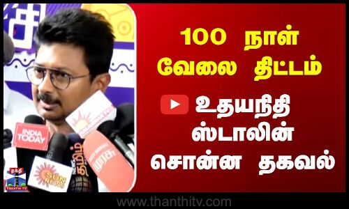 சென்னை நுங்கம்பாக்கம், அன்னை தெரசா மகளிர் வளாகத்தில், மகளிர் சுய உதவிக் குழுக்கள் தயாரிக்கும் பொருட்களின் விற்பனை கண்காட்சியை உதயநிதி ஸ்டாலின் தொடங்கி வைத்தார். பின்னர் செய்தியாளர்களிடம் பேசிய அவர், 100 நாள் வேலை திட்டம் பெயர் மாற்றம் குறித்து முதலமைச்சர் கண்டனம் தெரிவித்துள்ளதாக குறிப்பிட்டார்.