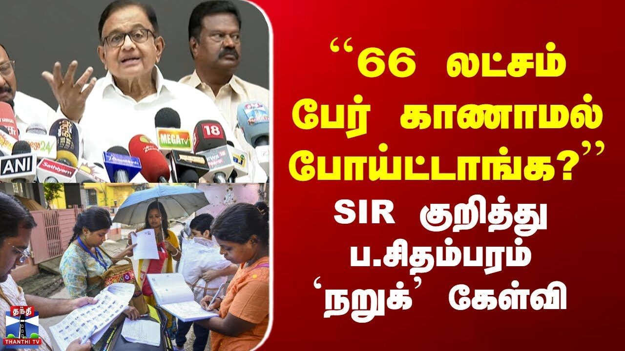 P.Chidambaram | ``66 லட்சம் பேர் காணாமல் போய்ட்டாங்க?’’ - SIR குறித்து ப.சிதம்பரம் `நறுக்’ கேள்வி