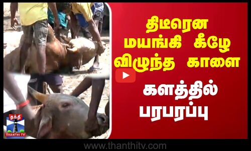 திடீரென மயங்கி கீழே விழுந்த காளை. களத்தில் பரபரப்பு