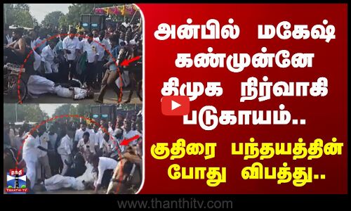 Trichy | அன்பில் மகேஷ் கண்முன்னே திமுக நிர்வாகி படுகாயம்.. குதிரை பந்தயத்தின் போது விபத்து..