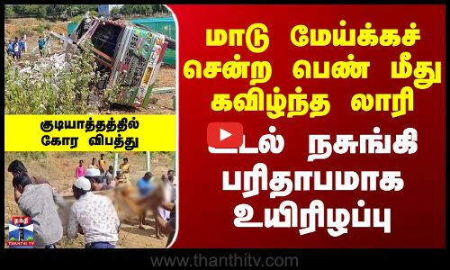 Accident | மாடு மேய்க்கச் சென்ற பெண் மீது கவிழ்ந்த லாரி - உடல் நசுங்கி பரிதாபமாக உயிரிழப்பு