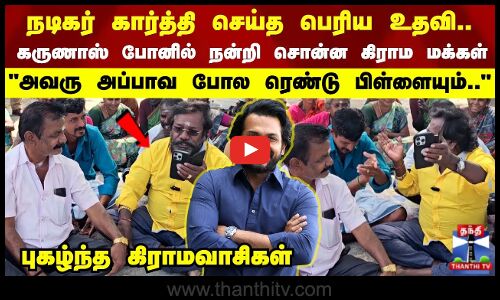நடிகர் கார்த்தி செய்த பெரிய உதவி.. கருணாஸ் போனில் நன்றி சொன்ன கிராம மக்கள்! "அவரு அப்பாவ போல ரெண்டு பிள்ளையும்.." - புகழ்ந்த கிராமவாசிகள்..!