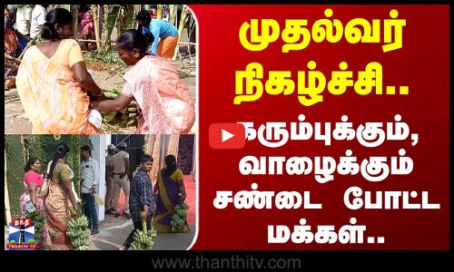 CM Stalin | முதல்வர் நிகழ்ச்சி.. கரும்புக்கும், வாழைக்கும் சண்டை போட்டுக்கொண்ட மக்கள்..