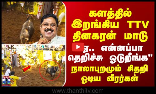 Avaniyapuram Jallikattu | களத்தில் இறங்கிய TTV தினகரன் மாடு - "ஏ.. என்னப்பா தெறிச்சு ஓடுறீங்க"