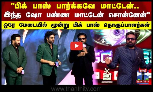 BiggBoss | "பிக் பாஸ் பார்க்கவே மாட்டேன்.." ஒரே மேடையில் மூன்று பிக் பாஸ் தொகுப்பாளர்கள்..