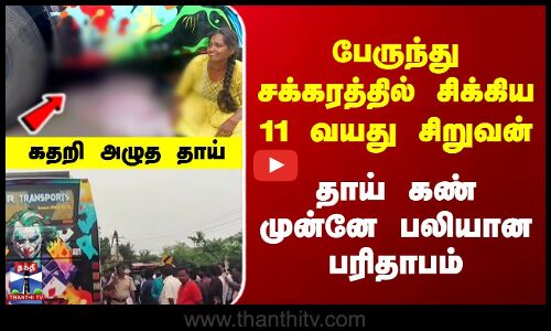 மயிலாடுதுறை சீர்காழி அருகே பேருந்து சக்கரத்தில் சிக்கி தாய் கண் முன்னே மகன் உயிரிழந்த சம்பவம் சோகத்தை ஏற்படுத்தியுள்ளது.