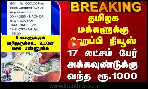 #BREAKING || 17 லட்சம் பேர் அக்கவுண்டுக்கு வந்த ரூ.1000 - உங்களுக்கும் வந்துருக்கா.. உடனே செக் பண்ணுங்க