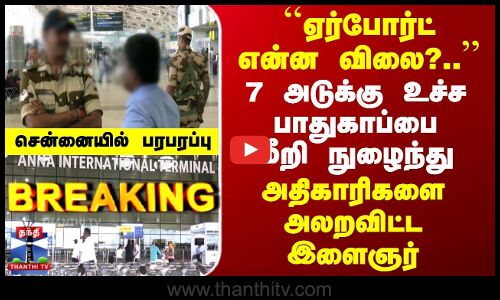 Breaking | Chennai Airport | 7 அடுக்கு உச்ச பாதுகாப்பை மீறி நுழைந்து அதிகாரிகளை அலறவிட்ட இளைஞர்