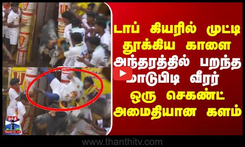 Madurai | Avaniyapuram Jallikattu டாப் கியரில் முட்டி தூக்கிய காளை அந்தரத்தில் பறந்த மாடுபிடி வீரர்