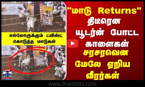 மாடு Returns திடீரென யூடர்ன் போட்ட காளைகள் மேலே ஏறிய வீரர்கள்