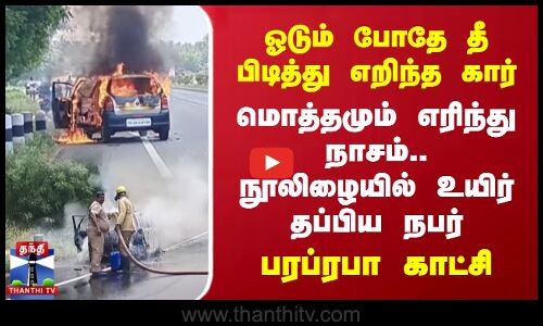 ஓடும் போதே திடீரென தீ பிடித்து எறிந்த கார் மொத்தமும் எரிந்து நாசம் நூலிழையில் உயிர் தப்பிய நபர்