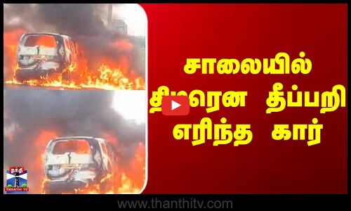 சாலையில் திடீரென தீப்பறி எரிந்த கார்