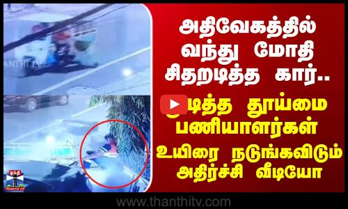 சென்னை ஆழ்வார்பேட்டையில் அதிவேகமாக வந்த கார் மோதி, தூய்மை பணியாளர்கள் காயம் அடைந்த சம்பவத்தின் அதிர்ச்சியூட்டும் சிசிடிவி காட்சி வெளியாகி உள்ளது...