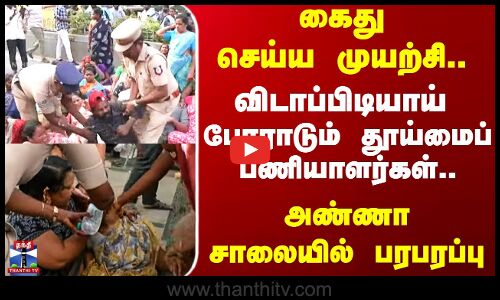 Chennai| கைது செய்ய முயற்சி.. விடாப்பிடியாய் போராடும் தூய்மைப் பணியாளர்கள்..அண்ணா சாலையில் பரபரப்பு