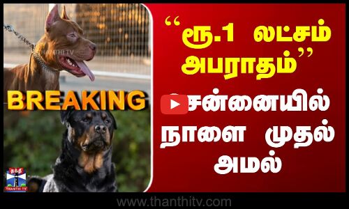 நாளை முதல் பிட்புல் (PIT BULL) மற்றும் ராட்வீலர் (ROTTWEILLER) நாய் இனங்களை புதிதாக வாங்கி வளர்ப்பவர்களுக்கு ஒரு லட்சம் அபராதம் விதிக்க மாநகராட்சி மன்றக்கூட்டத்தில் தீர்மானம். சென்னை மாநகராட்சியில் பிட்புல்(PIT BULL) மற்றும் ராட்வீலர் (ROTTWEILLER) இன வளர்ப்பு நாய்களை வளர்ப்பதற்கு தடை விதித்து தீர்மானம். சென்னை மாநகராட்சிக்கு உட்பட்ட பகுதிகளில் செல்லப்பிராணிகளின் உரிமையாளர்கள் கட்டாயம் உரிமம் பெற்றிருக்க வேண்டும் என அறிவுறுத்தப்பட்டுள்ளது.