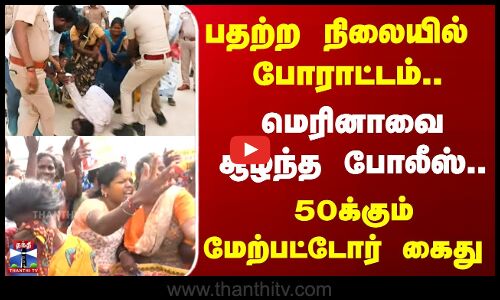 chennai Protest || பதற்ற நிலையில் போராட்டம்.. மெரினாவை சூழ்ந்த போலீஸ்.. 50க்கும் மேற்பட்டோர் கைது