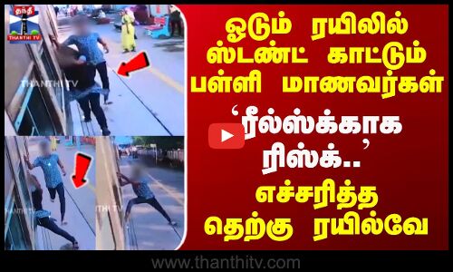 Chennai Train Stunt | ஓடும் ரயிலில் ஸ்டண்ட் காட்டும் பள்ளி மாணவர்கள் - `ரீல்ஸ்க்காக ரிஸ்க்..' - எச்சரித்த தெற்கு ரயில்வே