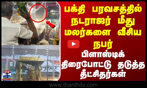 Chidambaram | பக்தி பரவசத்தில் நடராஜர் மீது மலர்களை வீசிய நபர் திரைபோட்டு தடுத்த தீட்சிதர்கள்
