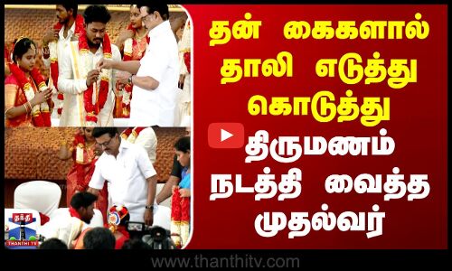 CM Stalin | Chennai | தன் கைகளால் தாலி எடுத்து கொடுத்து திருமணம் நடத்தி வைத்த முதல்வர் ஸ்டாலின்