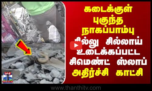 கடைக்குள் புகுந்த நாகப்பாம்பு - சில்லு சில்லாய் உடைக்கப்பட்ட சிமெண்ட் ஸ்லாப்.. அதிர்ச்சி காட்சி