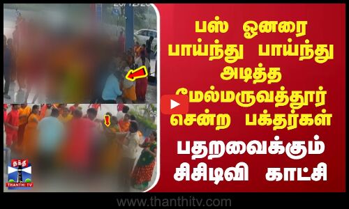 BUS |பஸ் ஓனரை பாய்ந்து பாய்ந்து அடித்த மேல்மருவத்தூர் சென்ற பக்தர்கள் -பதறவைக்கும் சிசிடிவி காட்சி