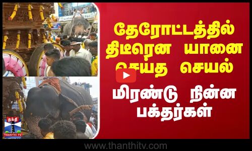 திருப்பூர் மாவட்டம் உடுமலையில் உள்ள மாரியம்மன் கோயில் தேரோட்டத்தில் ஓம் சக்தி கோஷம் விண்ணை முட்டியது. தளிரோடு மற்றும் பொள்ளாச்சி சாலை சந்திப்பில் தேர் திரும்பும் போது நகராமல் நின்ற நிலையில் , கேரள பகுதியிலிருந்து வரவழைக்கபட்டிருந்த மணிகண்டன் என்ற யானை நகராமல் நின்ற தேரை முட்டிதள்ளியது. இதையடுத்து, தேர் நகர தொடங்கியதும் பக்தர்கள் தேரை வடம் பிடித்து இழுத்து சென்றனர்.