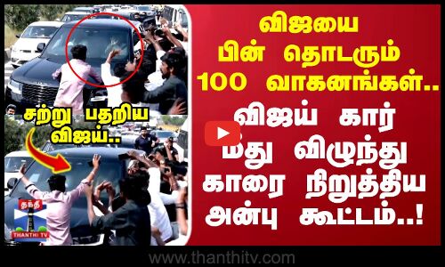 Erode | vijay | விஜய் கார் மீது விழுந்து காரை நிறுத்திய அன்பு கூட்டம்..! சற்று பதறிய விஜய்..