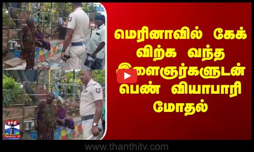 மெரினாவில் கேக் விற்க வந்த இளைஞர்களுடன் பெண் வியாபாரி மோதல்T