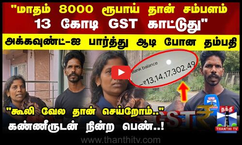 "மாதம் 8000 ரூபாய் தான் சம்பளம் 13 கோடி GST காட்டுது.." அக்கவுண்ட்-ஐ பார்த்து ஆடி போன தம்பதி!