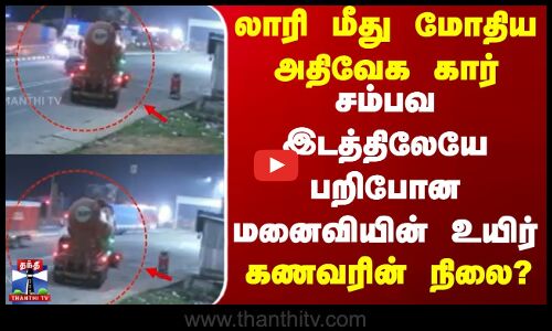 kanchipuram | Accident | லாரி மீது மோதிய அதிவேக கார் சம்பவ இடத்திலேயே பறிபோன மனைவியின் உயிர்