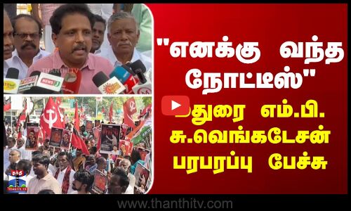 மகாத்மா காந்தி ஊரக வேலைத் திட்ட பெயரை மாற்றியதற்கு எதிராக நாடாளுமன்றத்தில் குரல் கொடுத்ததற்காக தனக்கு நாடாளுமன்ற செயலகத்திலிருந்து நோட்டீஸ் வழங்கப்பட்டுள்ளதாக, மதுரை மேலூரில் நடைபெற்ற ஆர்ப்பாடத்தின்போது, மதுரை எம்.பி. சு.வெங்கடேசன் தெரிவித்தார்.