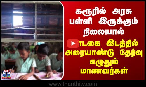 கரூரில் அரசு பள்ளி இருக்கும் நிலையால் வாடகை இடத்தில் அரையாண்டு தேர்வு எழுதும் மாணவர்கள்