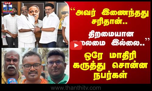 அதிமுகவில் அழைப்பு விடுத்தும், ஓபிஎஸ் ஆதரவாளரான முன்னாள் அமைச்சர் வைத்திலிங்கம், திமுகவில் இணைந்தது குறித்து மக்கள் குரல் பகுதியில் எழுப்பப்பட்ட கேள்விகளுக்கு, கடலூர் மாவட்டம் சிதம்பரம் மக்கள் தெரிவித்த கருத்து
