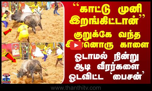 Jallikattu Bison | ``காட்டு முனி இறங்கிட்டான்'' - ஓடாமல் நின்று ஆடி வீரர்களை ஓடவிட்ட `பைசன்’