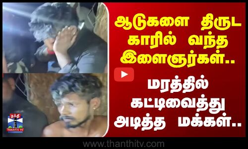 Karur | Theft | ஆடுகளை திருட காரில் வந்த இளைஞர்கள்.. மரத்தில் கட்டிவைத்து அடித்த மக்கள்..
