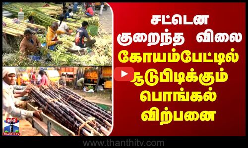 பொங்கல் பண்டிகை நாளை மறுநாள் நாடு முழுவதும் கோலாகலமாக கொண்டாடப்பட உள்ள நிலையில், சென்னை கோயம்பேடு சிறப்பு சந்தையில், கரும்பு, மஞ்சள், இஞ்சி, தோரணம் உள்ளிட்ட பொருட்கள் விற்பனை நடைபெற்று வருகிறது. இது குறித்த கூடுதல் விவரங்களுடன் இணைகிறார் எமது செய்தியாளர் மணிகண்டன்