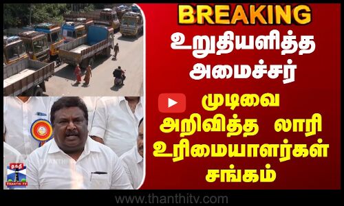 வாகன எப்.சி கட்டண உயர்வை கண்டித்து வேலைநிறுத்தம் அறிவித்திருந்த லாரி உரிமையாளர்கள் /லாரி உரிமையாளர்கள் சங்கத்தின் வேலை நிறுத்தம் ஒத்திவைக்கப்படுவதாக அறிவிப்பு/கட்டண உயர்வை குறைக்க நடவடிக்கை எடுப்பதாக அமைச்சர் சிவசங்கர் உறுதியளித்த நிலையில் போராட்டம் ஒத்திவைப்பு/வேலை நிறுத்தப் போராட்டம் மறு அறிவிப்பு வரும் வரை ஒத்தி வைப்பு - தமிழக மாநில லாரி உரிமையாளர்கள் சங்கம்