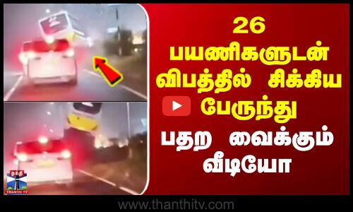 Villupuram | 26 பயணிகளுடன் விபத்தில் சிக்கிய பேருந்து - பதற வைக்கும் வீடியோ