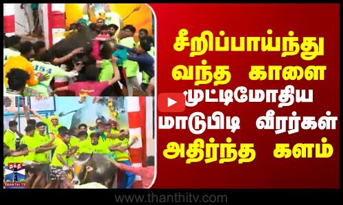 Madurai | Jallikattu | சீறிப்பாய்ந்து வந்த காளை முட்டிமோதிய மாடுபிடி வீரர்கள் அதிர்ந்த களம்