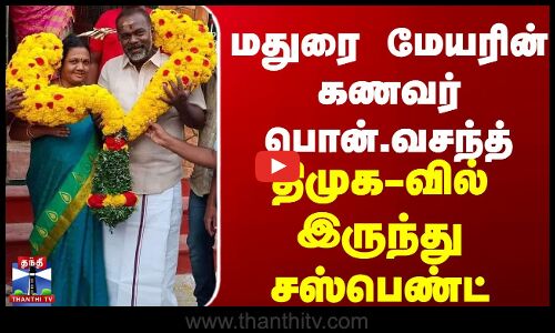 Madurai | மதுரை மேயரின் கணவர் பொன். வசந்த் திமுக-வில் இருந்து சஸ்பெண்ட்