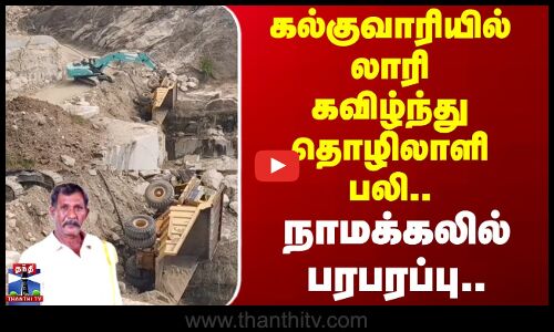 Namkkal | Accident | கல்குவாரியில் லாரி கவிழ்ந்து தொழிலாளி பலி.. நாமக்கலில் பரபரப்பு..
