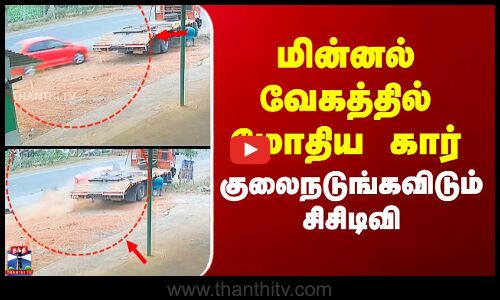 நாமக்கல் மாவட்டம் திருச்செங்கோட்டை அடுத்த நல்லாம்பாளையம் பகுதியில் அதிவேகமாக வந்த கார் திடீரென நிலை தடுமாறி சாலையோரம் நின்றிருந்த லாரி மீது மோதி விபத்துக்குள்ளான சிசிடிவி காட்சி வெளியாகியுள்ளது.