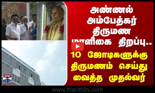 முதலமைச்சர் ஸ்டாலின், சென்னை பெருநகர் வளர்ச்சிக் குழுமம்சார்பில் வடசென்னை வளர்ச்சித் திட்டத்தின் கீழ் 21.50 கோடி மதிப்பீட்டில் கட்டப்பட்டுள்ள "அண்ணல் அம்பேத்கர் திருமண மாளிகை"யை திறந்து வைத்து, 10 இணையர்களுக்கு திருமணம் நடத்தி வைக்கிறார்... அதனை காணலாம்...