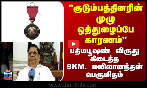 Padma Bhushan | "குடும்பத்தினரின் முழு ஒத்துழைப்பே காரணம்" - பத்மபூஷண் SKM. மயிலானந்தன் பெருமிதம்