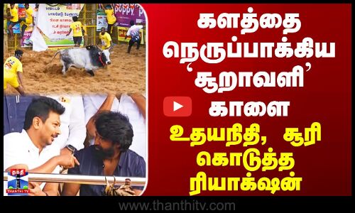 Palamedu Jallikattu | களத்தை நெருப்பாக்கிய `சூறாவளி’ காளை - உதயநிதி, சூரி கொடுத்த ரியாக்ஷன்