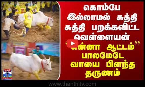 Palamedu Jallikattu | கொம்பே இல்லாமல் சுத்தி சுத்தி பறக்கவிட்ட வெள்ளையன் -பாலமேடே வாயை பிளந்த தருணம்