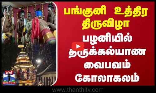பழனியில் பங்குனி உத்திரத் திருவிழாவின் முக்கிய நிகழ்ச்சியான திருக்கல்யாண வைபவம் விமர்சையாக நடைபெற்றது. இதில் ஏராளமான பக்தர்கள் கலந்துகொண்டு சாமி தரிசனம் செய்தனர். கொடுமுடி காவிரி ஆற்றில் இருந்து தீர்த்தம் எடுத்து, பாதயாத்திரையாக வரும் ஆயிரக்கணக்கான பக்தர்கள் முருகனுக்கு தீர்த்தம் செலுத்தி வழிப்பட்டனர். முன்னதாக அருள்மிகு முத்துக்குமாரசாமி-வள்ளி, தெய்வானைக்கு சிறப்பு அபிஷேகங்களும், ஆராதனைகளும் நடைபெற்றன. தொடர்ந்து வள்ளி, தெய்வானையுடன் மணக்கோலத்தில் முத்துக்குமாரசுவாமி வெள்ளித்தேரில் வலம் வந்து பக்தர்களுக்கு அருள் பாலித்தார்.