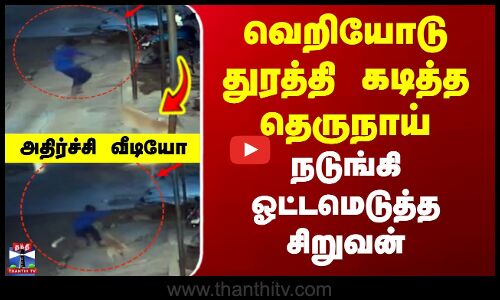 சிறுவனை துரத்தி துரத்தி கடித்த தெருநாய் - அதிர்ச்சி காட்சி, பெரம்பலூர் அருகே தெருவில் விளையாடிக் கொண்டிருந்த சிறுவனை துரத்தி துரத்தி கடித்த தெருநாய்...உயிருக்கு அச்சுறுத்தலாக இருக்கும் நாய்களை பிடிக்க மக்கள் கோரிக்கை விடுத்துள்ளனர்...