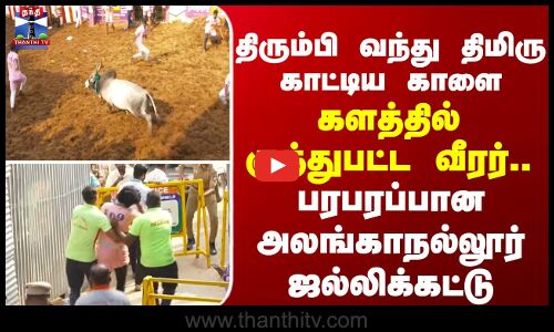 Alanganallur Jallikattu || திரும்பி வந்து திமிரு காட்டிய காளை..களத்தில் குத்துபட்ட வீரர்