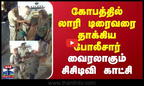 சேலம் மாவட்டம் சங்ககிரி அருகே, லாரி ஓட்டுனரை போலீசார் தாக்கும் காட்சிகள் வெளியாகி பரபரப்பை ஏற்படுத்தியுள்ளது. சேலத்திலிருந்து வந்த லாரி ஒன்று சங்ககிரி பழைய பேருந்து நிலையம் அருகே வந்த போது, எதிர்திசையில் தனியார் மில் வேன் வந்ததால் எதிரெதிரே வாகனங்களை நிறுத்தி போக்குவரத்து பாதிக்கப்பட்டுள்ளது. அப்போது காவல்துறையினர் லாரியை நகர்த்தும்படி கூறியதற்கு, லாரி ஓட்டுனர் மறுத்து வாக்குவாதத்தில் ஈடுபட்டுள்ளார். இதனால் கோபம் அடைந்த போலீசார் லாரி ஓட்டுனரை தாக்கியுள்ளனர். தொடர்ந்து இரு வாகனங்களையும் நகர்த்த செய்து போக்குவரத்தை சீர்படுத்தினர். தற்போது போலீசார் லாரி ஓட்டுனரை தாக்கும் காட்சி வைரலாக பரவி வருகிறது.